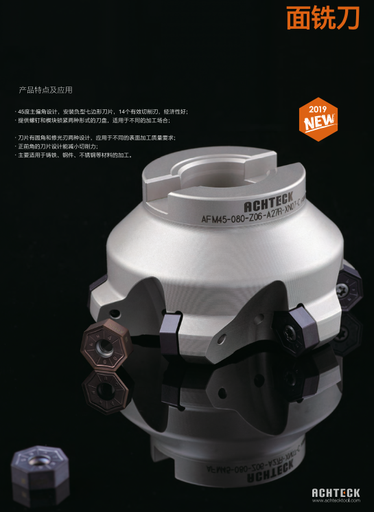 · 45 度主偏角設計,安裝負型七邊形刀片. 14 個有效切削刃,經濟性好;