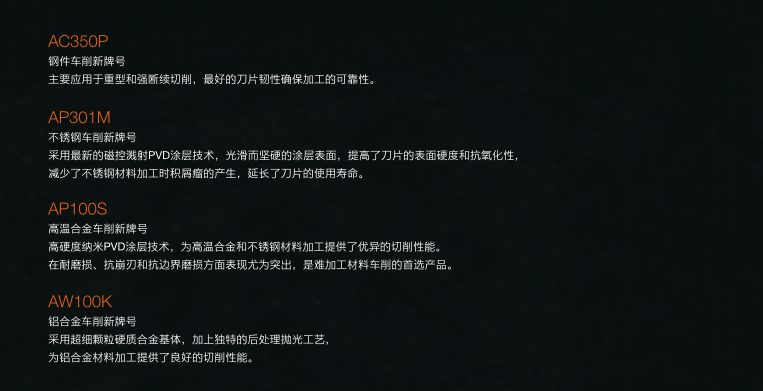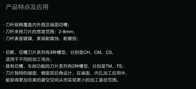 · 刀片擁有 6 種牌號,應用范圍廣。
