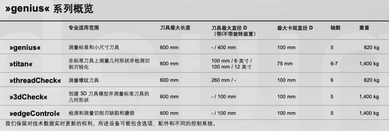 選擇適合您需求的 ?genius? 系列測量設備,您將獲得 微米級刀具測量數據。