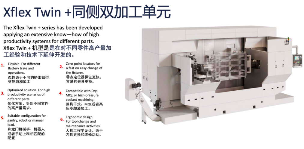 Xflex系列機床是在對鋼、鑄鐵和鋁件的高產量加工經驗和技術下延伸開發的。 我們標準方案可以進行更改變化布置。每一個布置都是為了滿足您的產量及投資效益目標而設計。