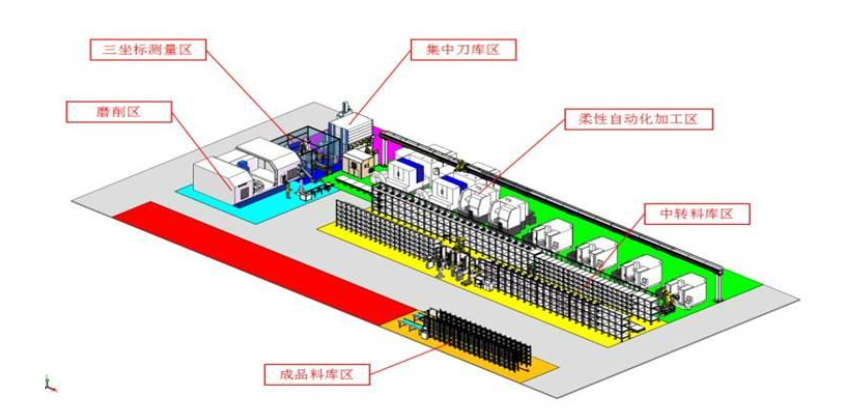 ? 刀具通過桁架從集中刀庫運輸至機床